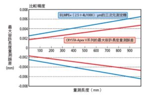 三次元測定機Mitutoyo CMM Crysta-Apex V系列三次元量測儀最大允許誤差*1為E0,MPE=(1.7+3L/1000) μm,是一種高精度CNC三次元測定機。